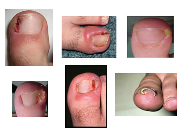 患有倒甲的腳趾四周會出現紅、腫、熱、痛以及流膿的徵狀。正如下圖所示。